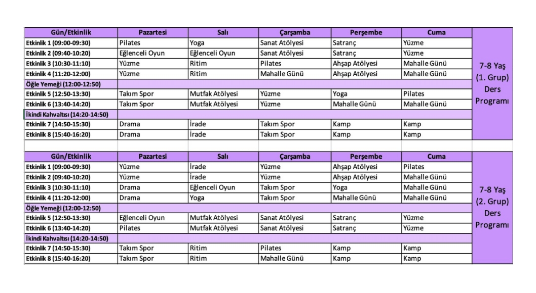 7-8 Yaş Yaz Okulu ProgramıDetayları